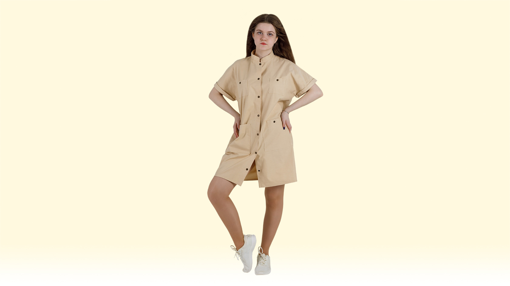 В платьях корейского стиля легко узнать вдохновение: яркие оттенки, овальные срезы подола, объёмные карманы, рубашечные воротники. Прямой силуэт с акцентом на талию — часто с элегантным поясом, который добавляет женственности даже самому простому крою ✨